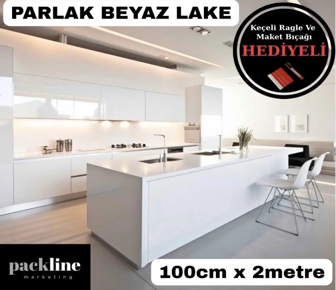 Parlak Beyaz Yapışkanlı Folyo Mutfak Dolap Ve Mobilya Kaplama Folyosu 100cm x 2mt
