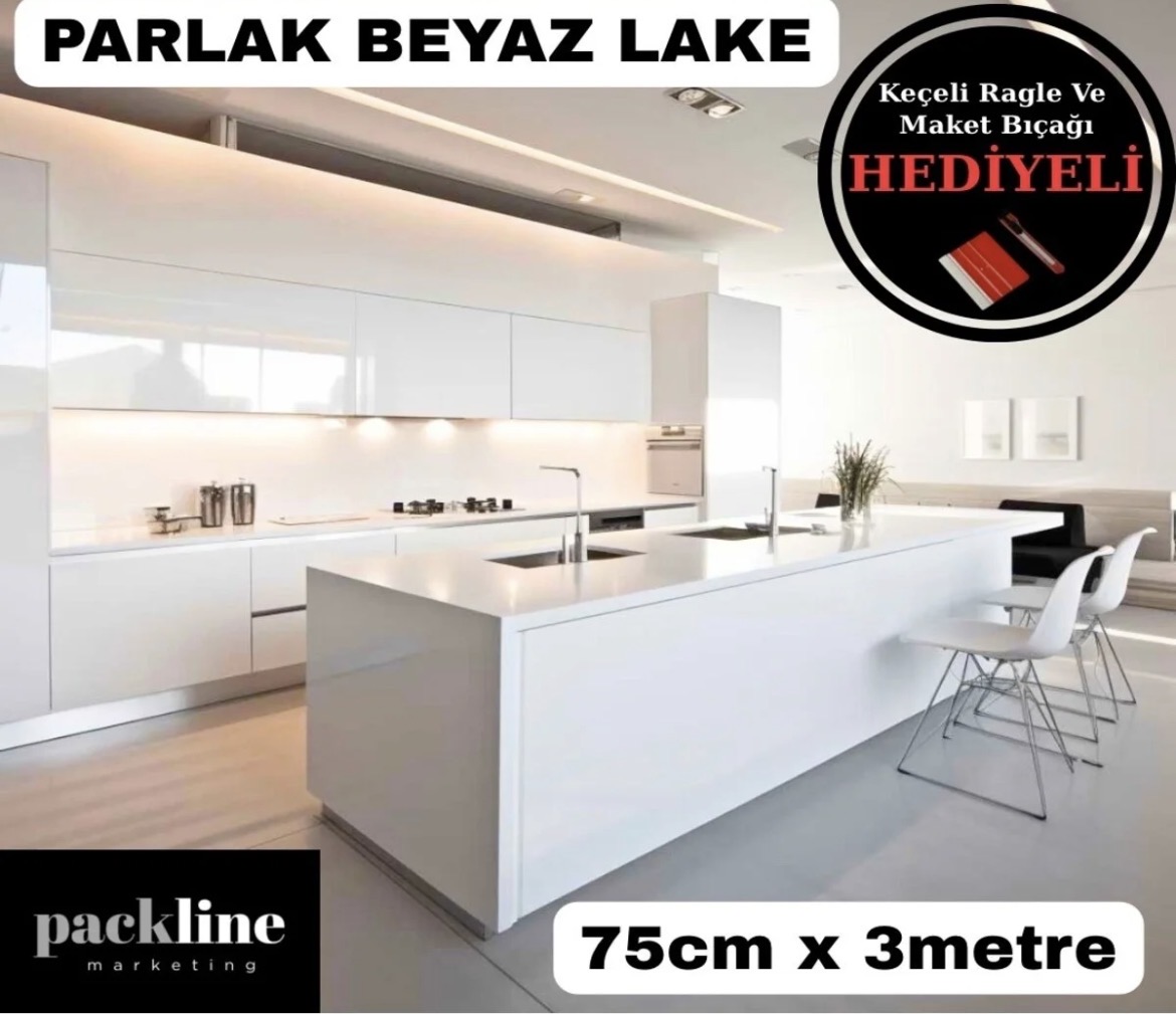 Parlak Beyaz Yapışkanlı Folyo Mutfak Dolap Ve Mobilya Kaplama Folyosu 75cm x 3mt